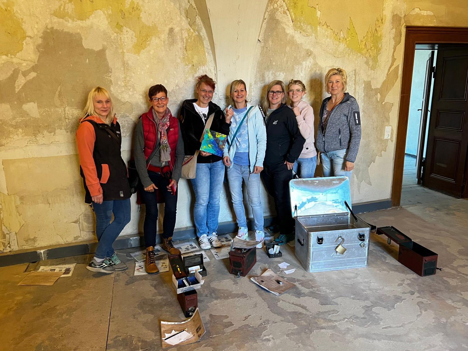 Dort galt es als Team eine knifflige Aufgabe zu lösen: Der Kunst- und Gemäldedieb „Kleinklau“ hatte ein wertvolles Bild der Malerin „IRM“ gestohlen, es im Schloss versteckt und den Ort durch 50 Aufgaben und Rätsel gesichert. Doch er hat nicht mit der Raffinesse und dem Spürsinn unseres Teams gerechnet. Gemeinsam haben wir das Rätsel gelöst!